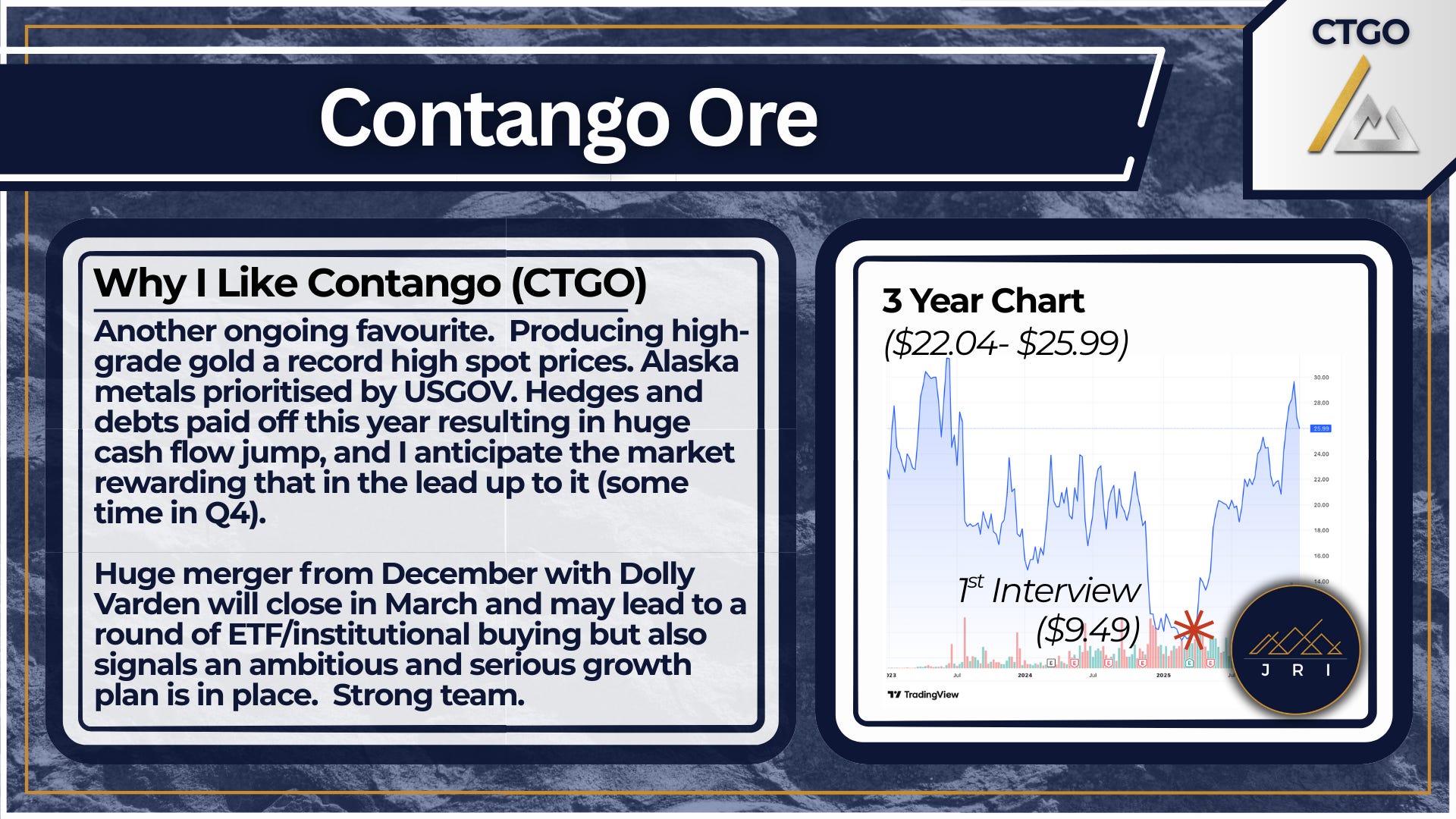 2. Contango Ore, CTGO.NYSE (Current Pick)
