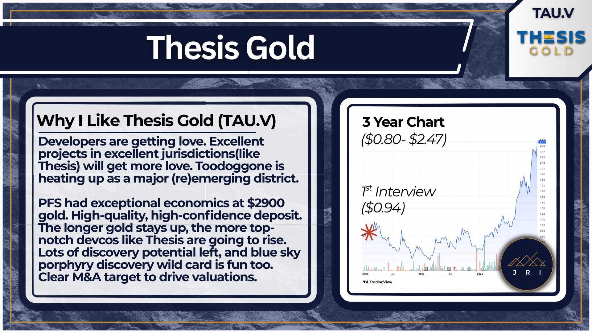 8. Thesis Gold, TAU.V (Current Pick)