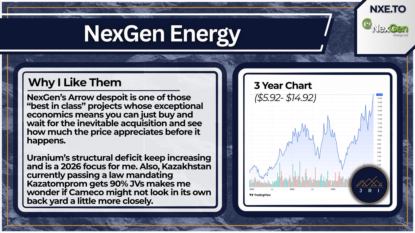 And a final tip - if you are bullish on a commodity but uncertain about specific tickers, don’t be afraid to buy long-dated call options on the underlying commodity. Premiums are high these days, but still a worthy strategy. I’ll say my silver call from this summer certainly helped make up for the fact I didn’t have a primary-silver play in my portfolio. Leveraged exposure to uranium spot price is on my list this year as well, for example.
