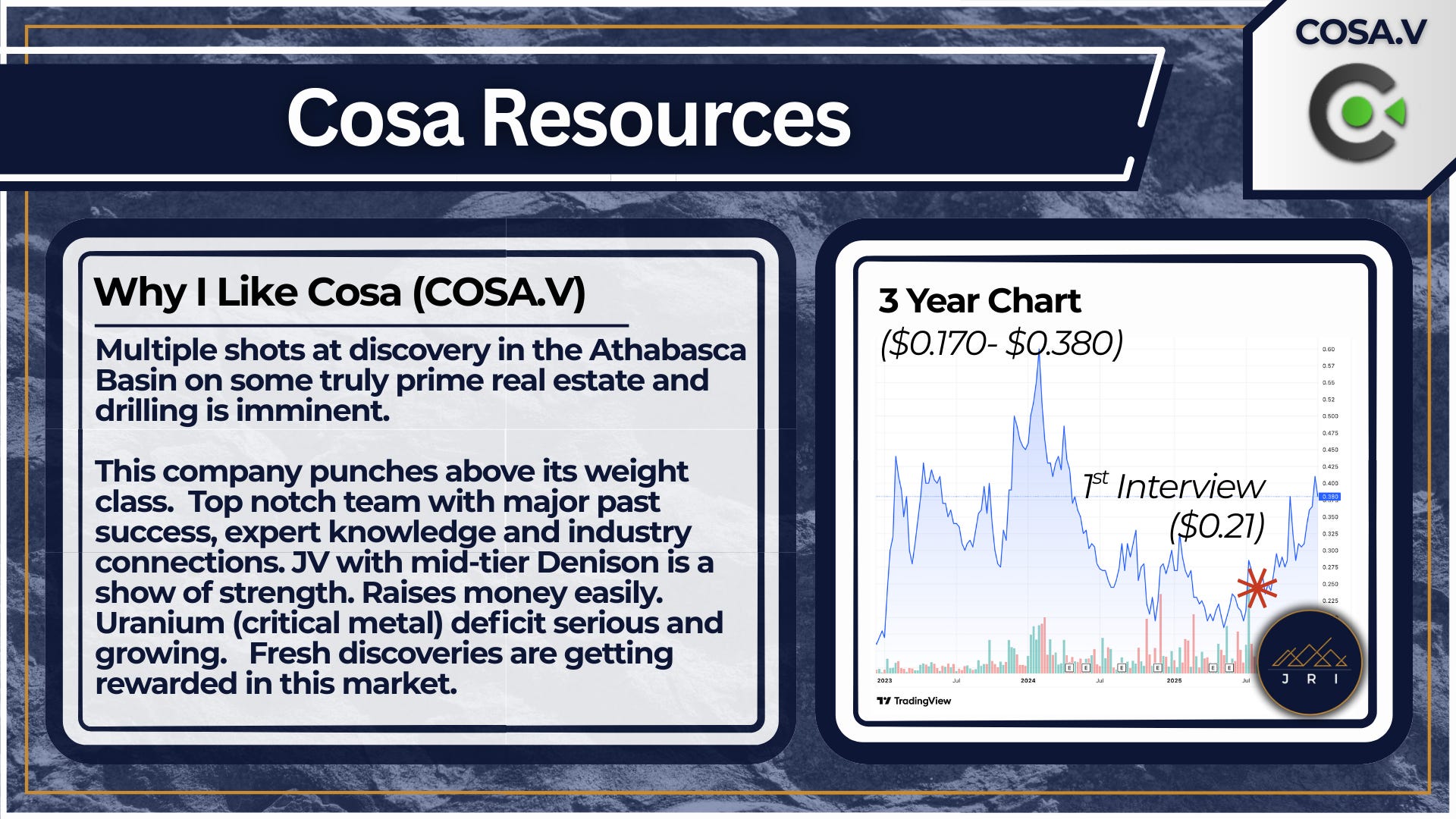 3. Cosa Resources, COSA.V (Current Pick)