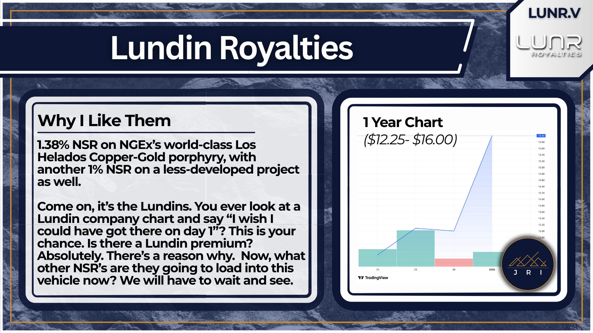 5. Lundin Royalties, LUNR.V (New Pick)