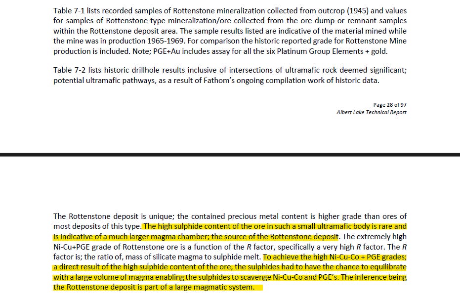 I want to take a second and explain Ian’s geological thesis here, because it obviously plays a critical role in this story. Ian explains it during the interview, but the core thesis of his work is that, contrary to historical assumptions, the small, high-grade historical Rottenstone Mine wasn’t a one-off deposit. Ian’s belief is that because of the sheer historical grade of this magmatic system (9 g/t PGE) it implies that it must have had “unbelievably perfect” geological conditions to produce it.