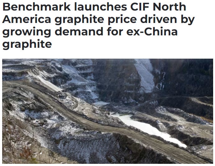 Benchmark Metals has begun producing a new North American minus 100 mesh graphite index, taking into account the increased costs of competing with China and meeting all of those ESG criteria and supplying into the North American market.