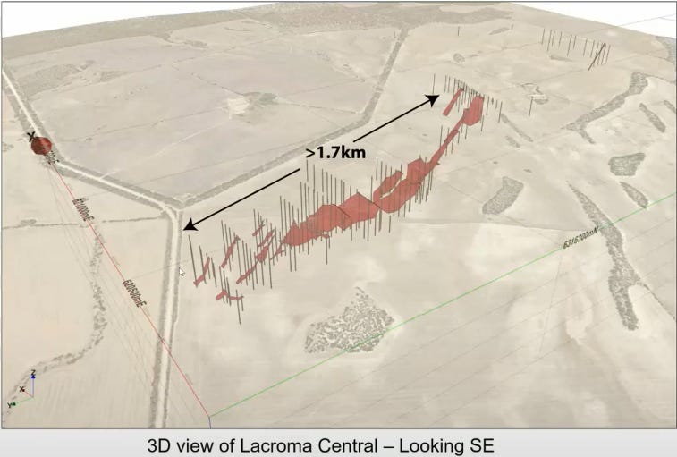 Now exploring a new Lacroma North target a few km away that looks to be along strike with the current Lacroma deposit.